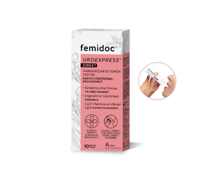 "Unfortunately, I keep getting urinary tract infections, so I've tried a lot of things. This product from femidoc is the absolute best option for prevention and care for me so far. It feels incredibly comfortable, it's very well tolerated, and the burning sensation I used to experience after exercise or sports has simply disappeared. My doctor recommended it, and I'm very pleased. This is now a staple in my medicine cabinet."