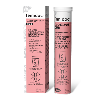 Do you frequently suffer from cystitis? A daily drink of UROEXPRESS® FIZZ not only tastes good, but also helps prevent recurring urinary tract infections caused by Escheria coli. The D-mannose molecules it contains are able to adhere to E. coli bacteria and prevent them from colonizing mucous membranes. Instead, they are excreted in the urine.