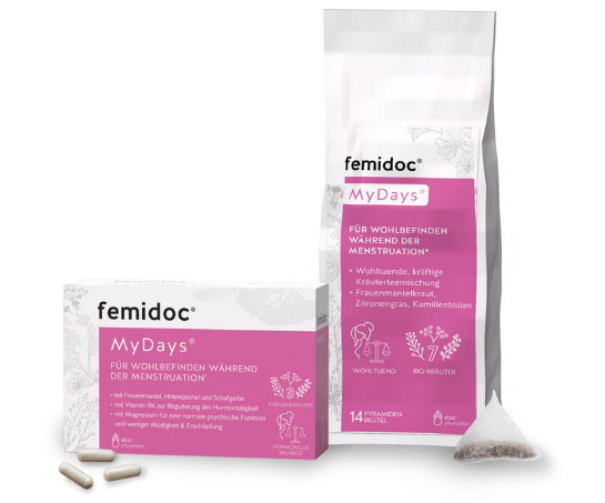 Ja, die Periode kann herausfordernd sein, begleitet von Schmerzen und depressiven Verstimmungen -- doch du kannst sie zum Anlass für Selbstfürsorge nehmen: Sei achtsam, sorge für Ruhephasen und verwöhne dich mit MyDays®: Diese Kombination aus Pflanzenextrakten unterstützt das Wohlbefinden der Frau während dieser Phase.
