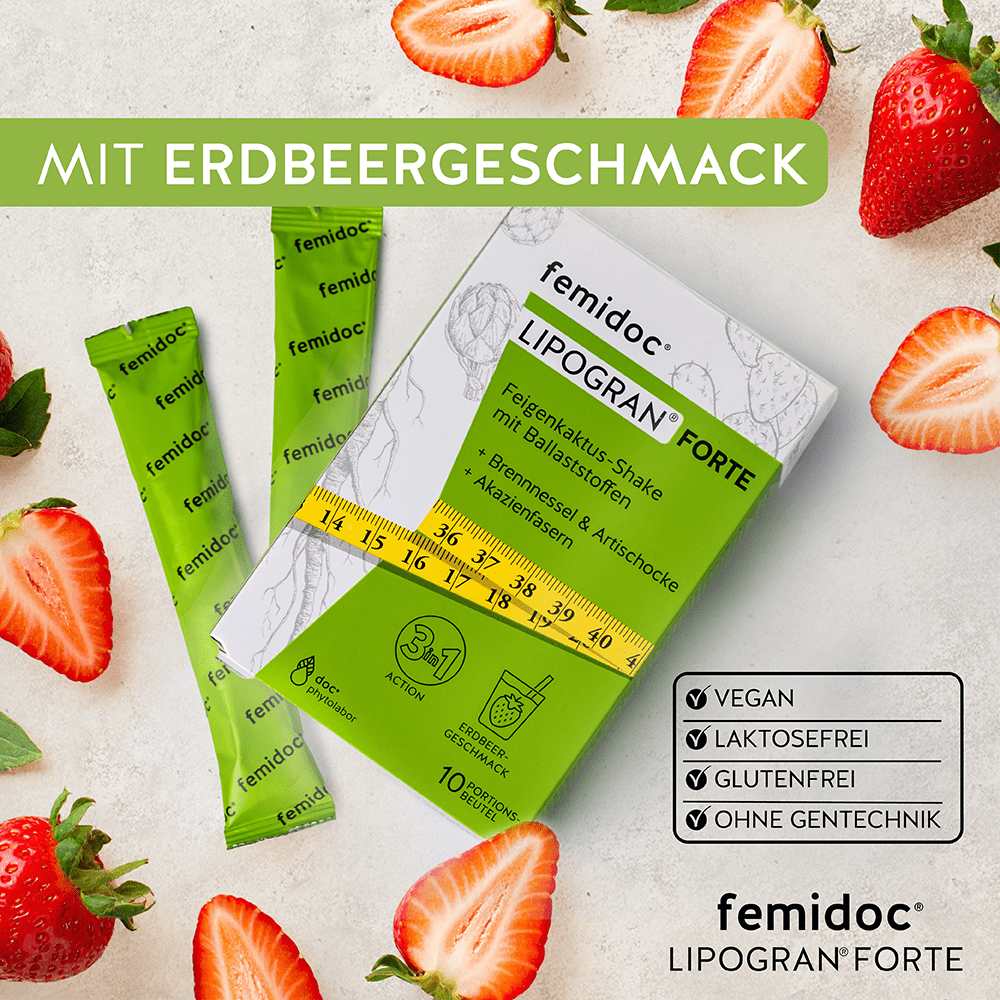 Nahrungsergänzungsmittel mit Pflanzenextrakten, Ballaststoffen und Süßungsmittel. Erdbeergeschmack. Täglich morgens 1 Beutel in 500 ml Wasser auflösen, kräftig umrühren und trinken.