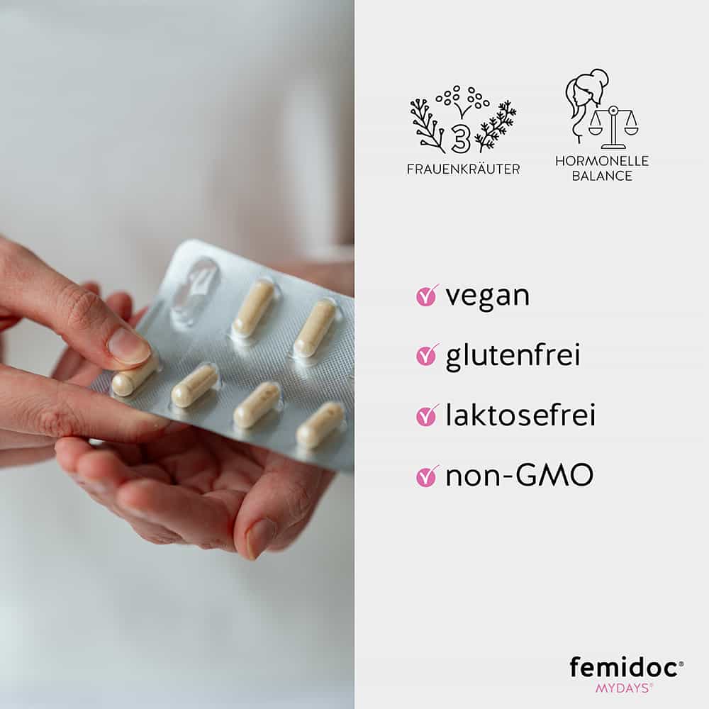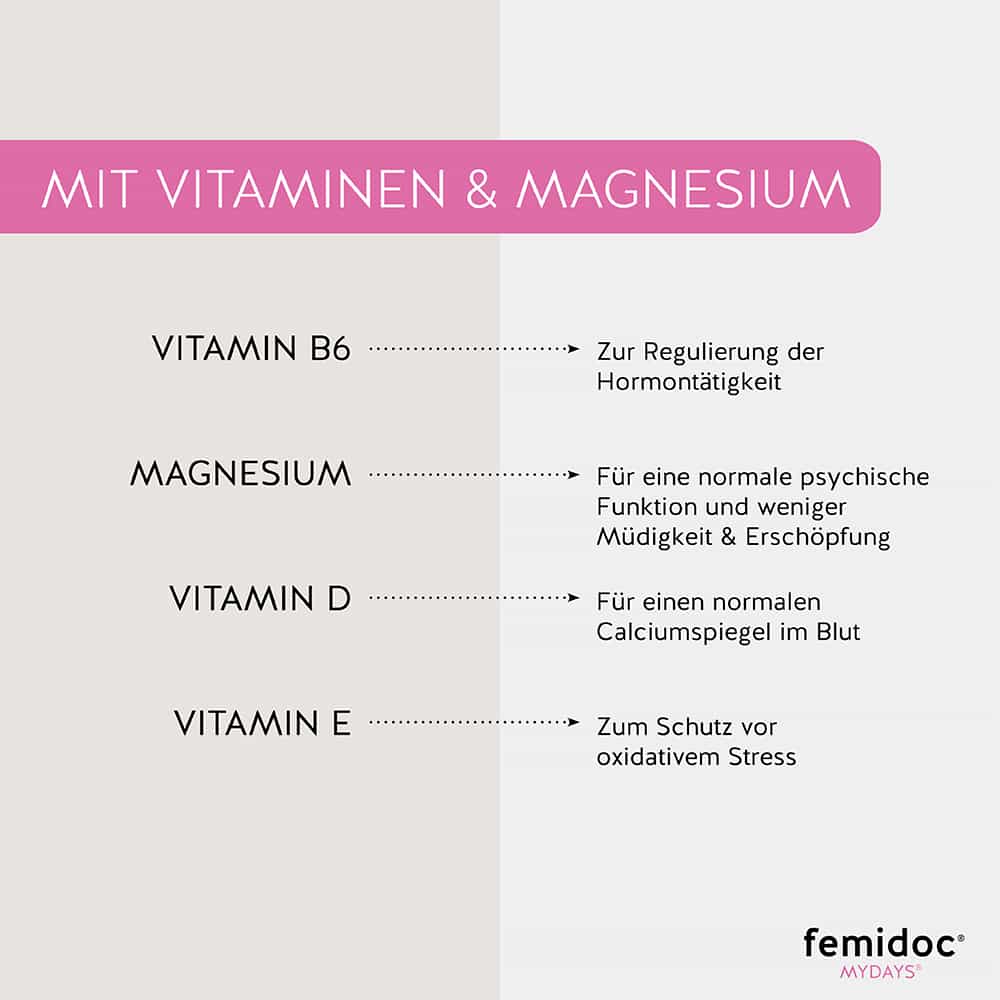 Vitamin B6 zur Regulierung der Hormontätigkeit.