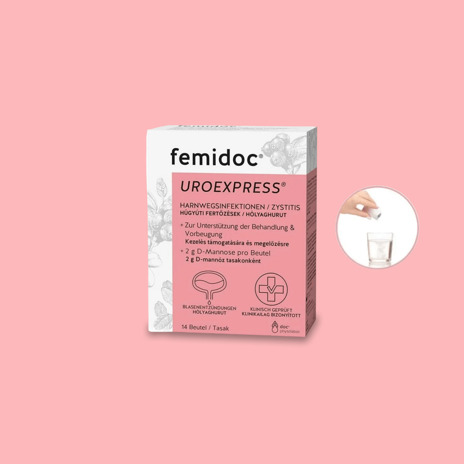 Schnelle Hilfe bei Blasenentzündungen. Der Wirkstoff D-Mannose haftet an E. coli Bakterien und verhindert somit, dass sich die Bakterien an den Wänden der Harnwege absetzen. Daraufhin werden die Bakterien ganz einfach beim Wasserlassen aus dem Körper ausgespült.